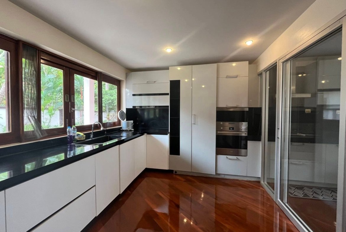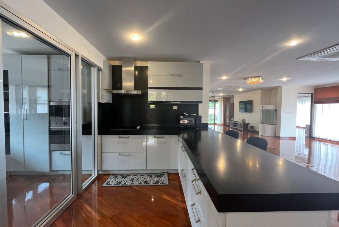 This magnificent 6-bedroom villa is set on a massive 944 sqm land plot, providing ample room for luxurious living and outdoor enjoyment. The centerpiece of the beautifully landscaped grounds is the large private swimming pool, perfectly complemented by a well-maintained arranged garden.