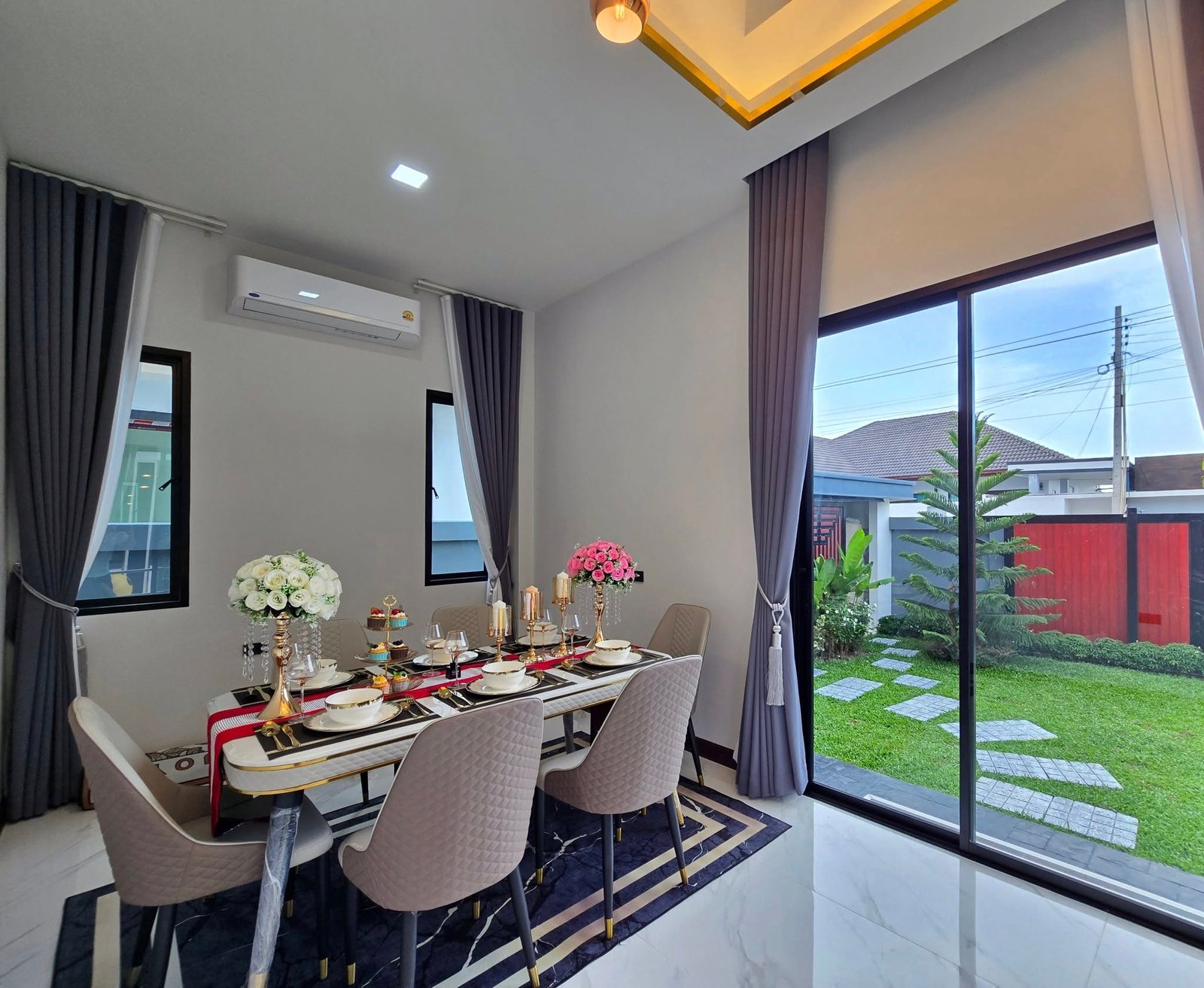• Full Furniture Package: Sofa set, dining table, and quality curtains throughout the house.